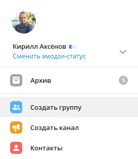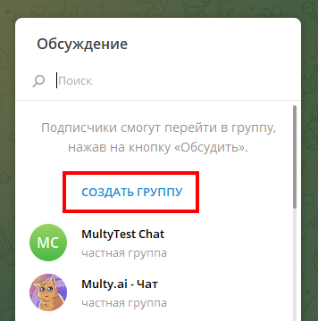 1. Зайдите в меню и выберите пункт "Создать группу"<br>