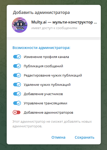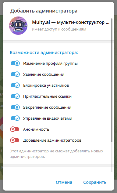 * [Как добавить бота в Telegram-чат / группу и выдать ему доступ](#kak-dobavit-bota-v-telegram-chat-gruppu-i-vydat-emu-dostup)