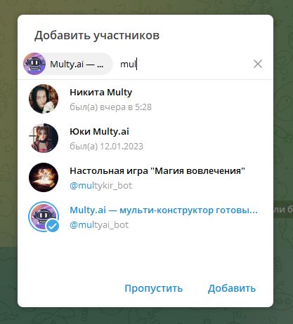 3. Добавьте участников (по желанию), либо сразу можете добавить бота.\