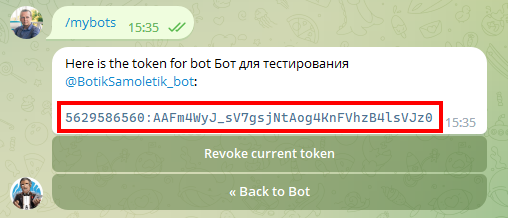 ### **Как получить токен уже созданного ранее Telegram-бота:**