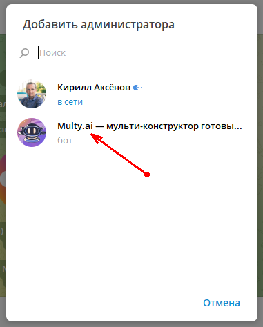3. Введите название вашего бота, выберите его и нажмите "Добавить".\
