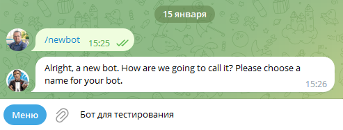 3. Следуя указаниям задайте для вашего бота имя<br>
