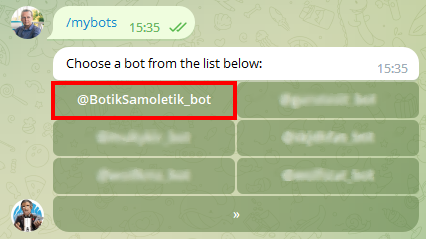 2. Из меню или вручную отправляем команду **`/mybots`**