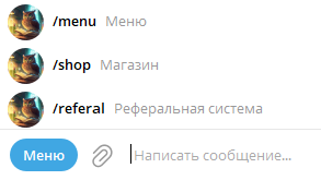 Теперь вы можете в блок-схемах делать реакцию на ключевые слова, которые указали в меню. Например: **/menu** **/shop** **/referal** и т.д.