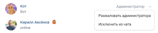 Для ВКонтакте: если вы добавляете отдельного бота в чат внутри вашего сообщества, тогда зайдите в раздел "Сообщения", в нужный чат, откройте список пользователей и сделайте бота администратором.